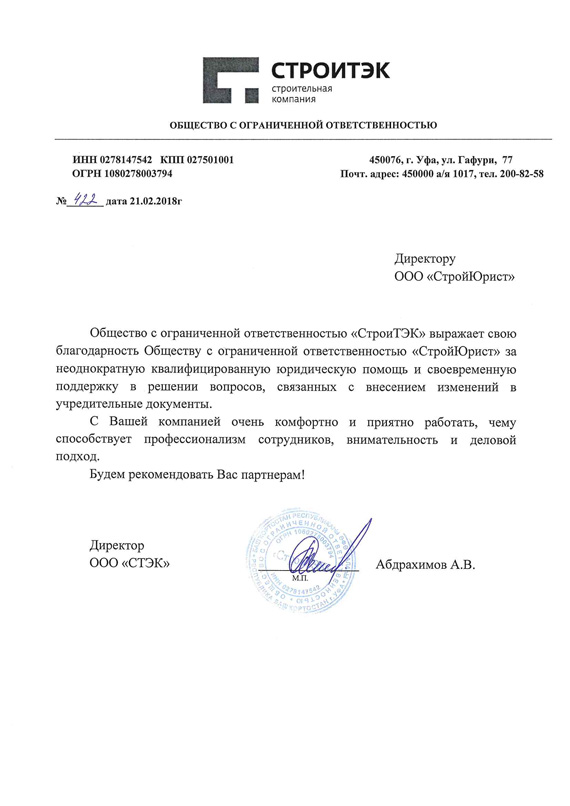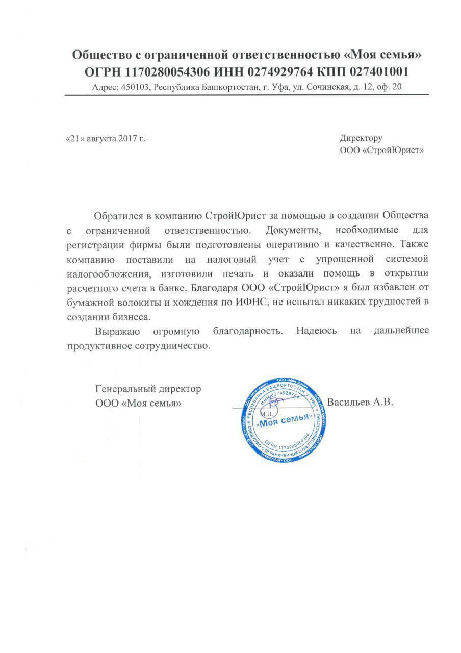 Отзывы клиентов "СтройЮрист" по регистрации фирм в Екатеринбурге